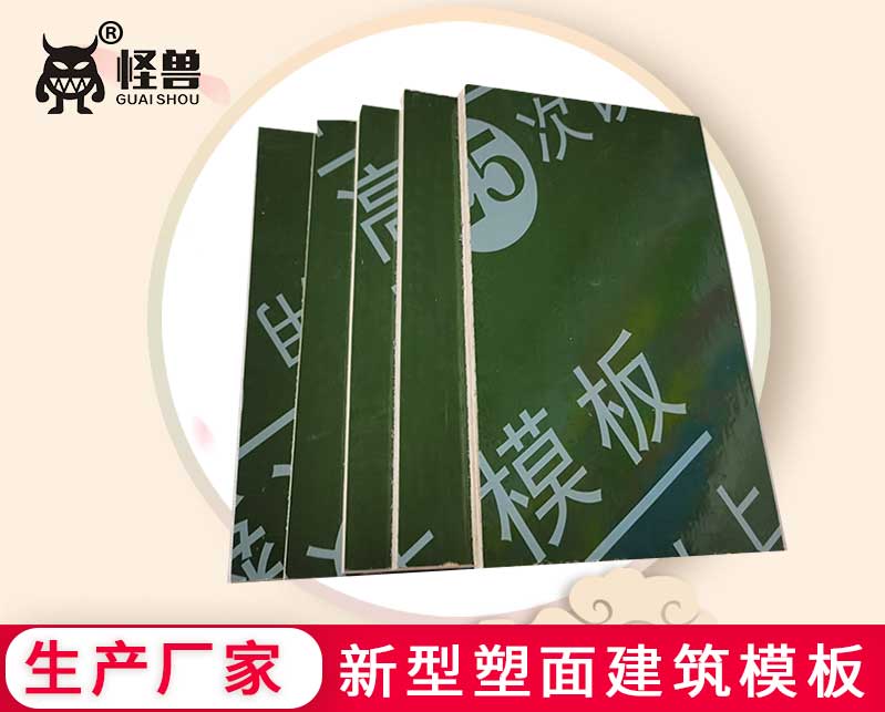 怪獸木業研發生產新型塑面建筑模板,采用鋼化塑面模板技術生產的覆塑建筑模板、鋼化膜塑面建筑模板保用周轉25-33次。