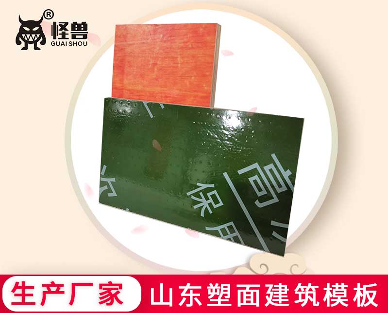 怪獸木業研發生產山東塑面建筑模板,采用鋼化塑面模板技術生產的覆塑建筑模板、鋼化膜塑面建筑模板保用周轉25-33次。